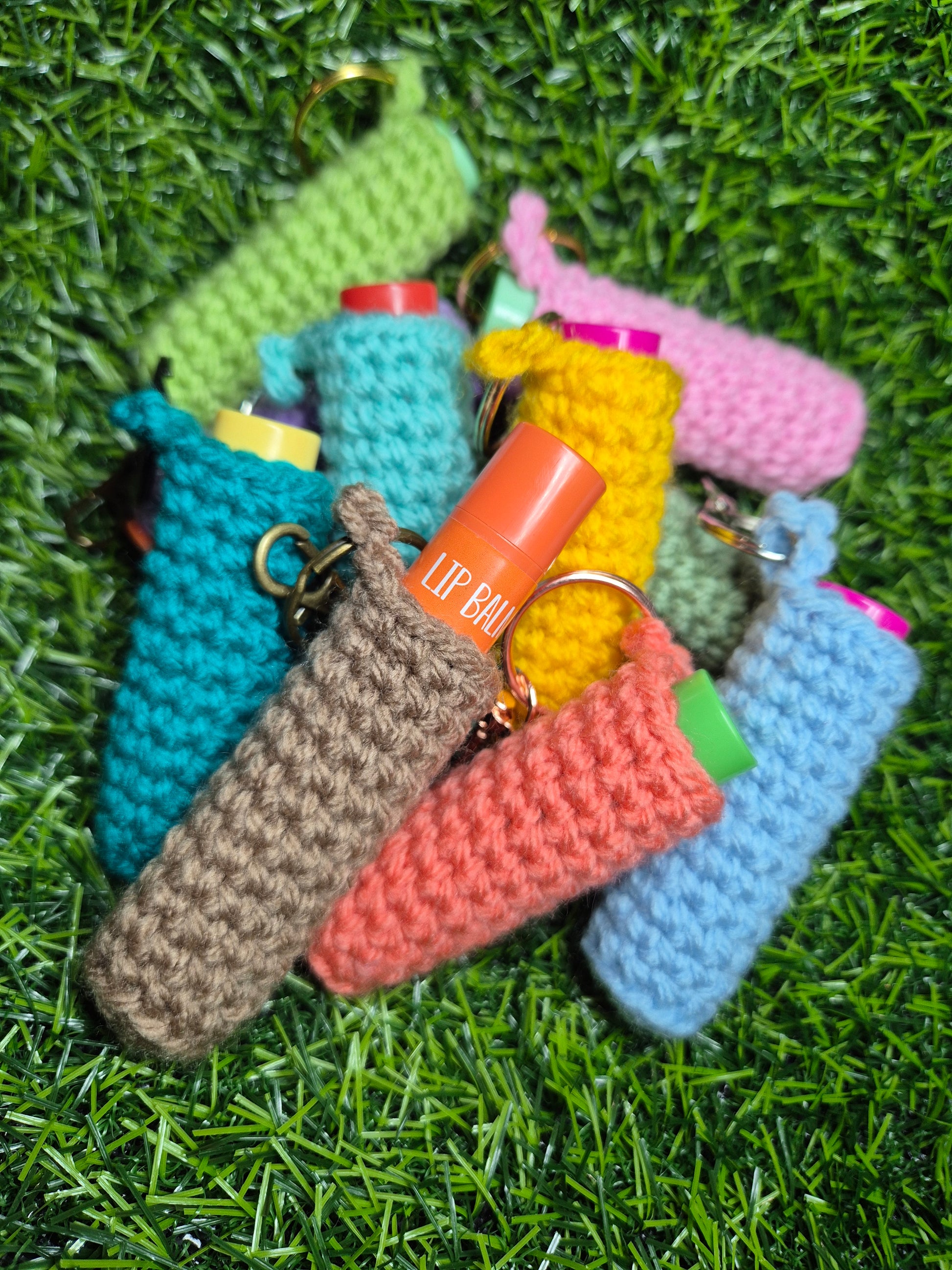 Cut crochet lip balm holders perfect for your keys